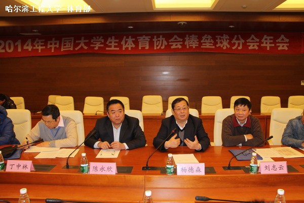12月17日,2014年中国大学生体育协会棒垒球分会年会开幕式在我校启航中心贵宾会议厅举行。开幕式由体育部陈永欣同志主持,副校长杨德森同志出席会议并致辞。来自全国28所高校40余位代表参加会议。