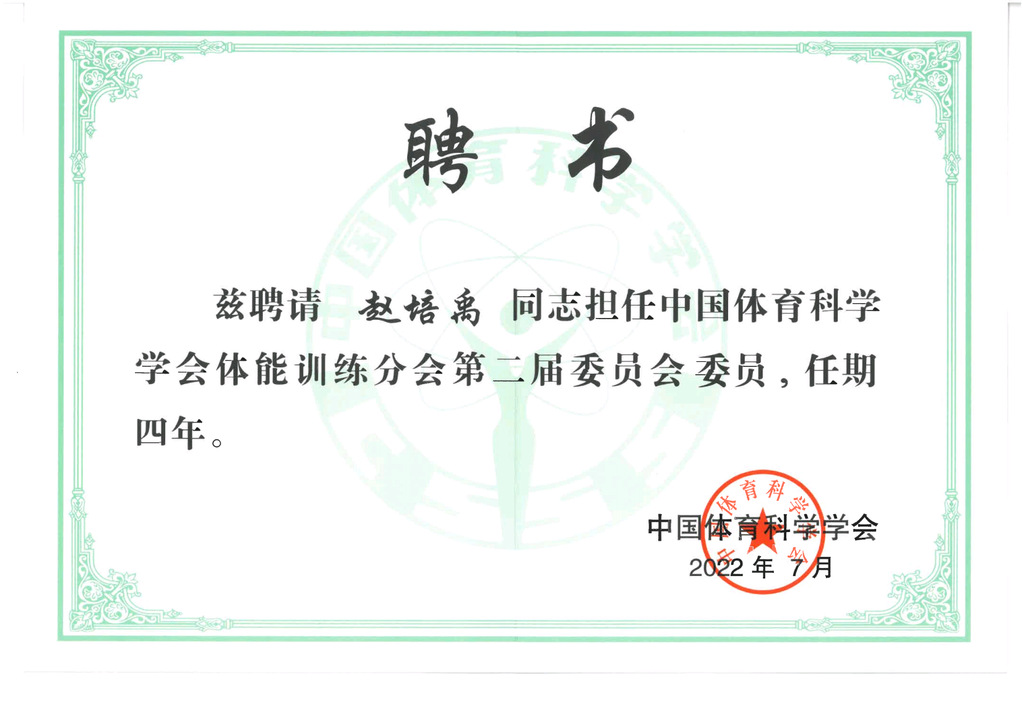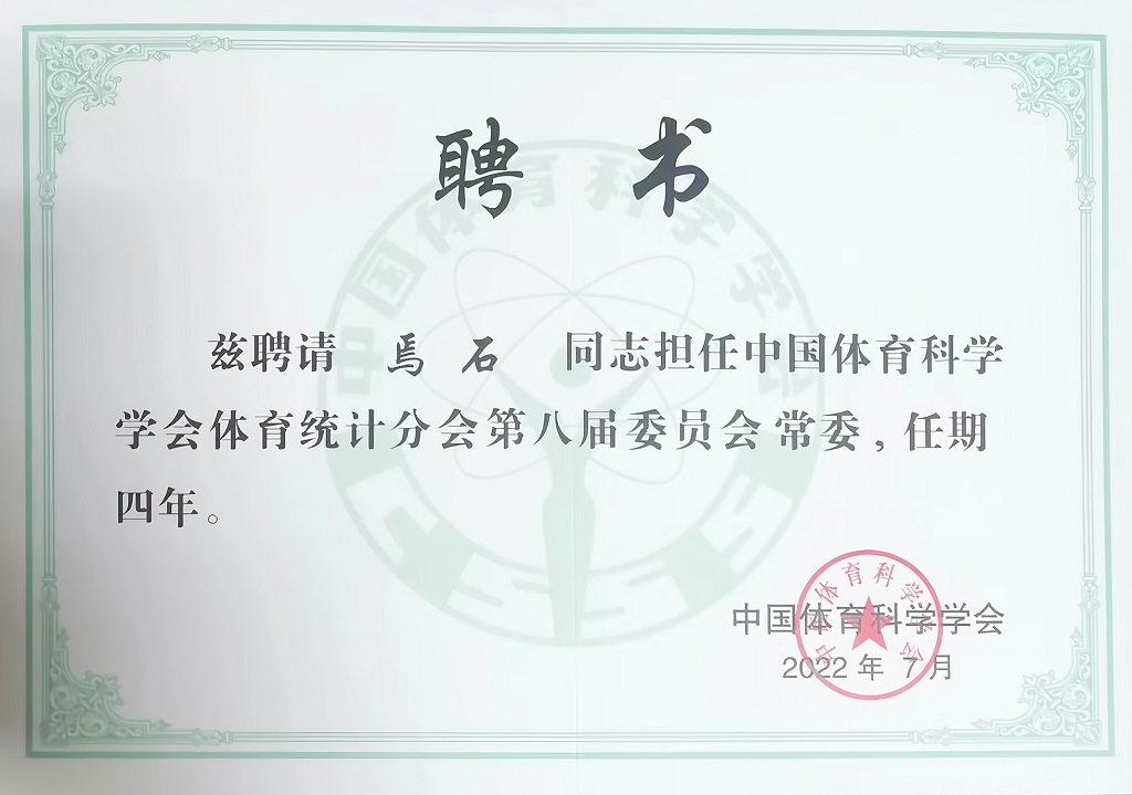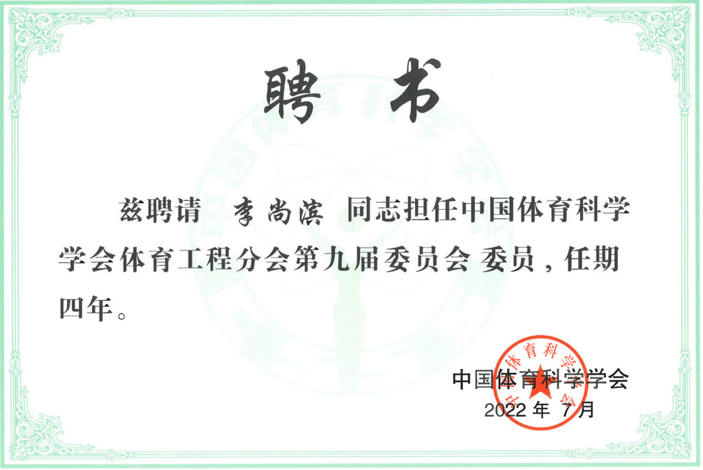 日前,中国体育科学学会第九次全国会员代表大会以线上、线下形式在北京召开,大会选举国家体育总局副局长李颖川担任学会第九届理事会理事长。会后,各分会进行了换届选举。我校体育部李尚滨教授受聘担任体育工程分会第九届委员会委员、焉石教授担任体育统计分会第八届委员会常委、赵培禹副教授担任体能训练分会第二届委员会委员。