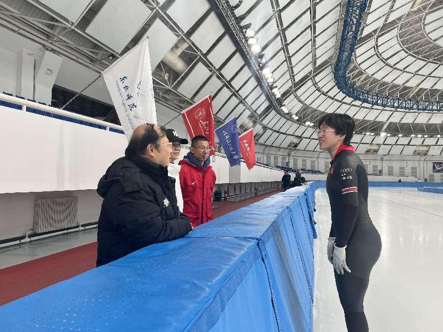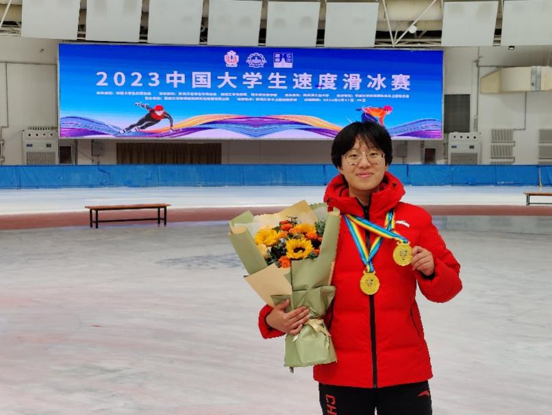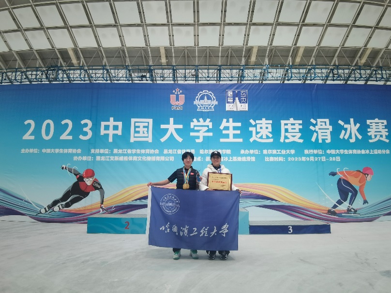 2023年9月27至28日在黑龙江省冰上基地速滑馆举行了2023年中国大学生速度滑冰赛,来自全国各高校的运动员和教练员顽强拼搏,为大家呈现了一场充满活力、激情四溢的盛会。由我校教师关成雪带领的速度滑冰队以饱满的精神状态,勇夺三金,斩获佳绩。