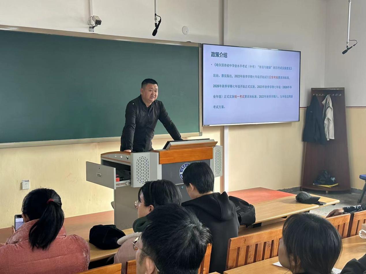 11月3日-5日,体育部开展2023年“为师生办实事办好事”公益体育中考辅导与测试活动。依据《哈尔滨市初中学业水平考试(中考)“体育与健康”科目考试实施意见》,从2026年起“中考科目-体育与健康”占中考成绩80分。为满足子女将参加中考的教职工需求,在前期进行充分调研准备的基础上,体育部面向全校教职工开展中考科目“体育与健康”讲座。