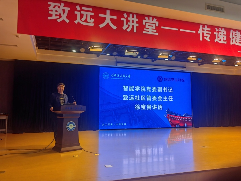 活动最后,智能学院党委副书记、致远社区管委会主任徐宝贵讲话。他说,这是致远社区党支部与第一教学中心党支部的党建联建,希望聘任的体育部成长导师能够负责社区内学生生涯规划、体质健康教育等相关工作,并根据六公寓学生社区实际情况,发挥体育部教师的专业特色与优势,让学生在这过程中找到一种自己喜爱的运动,并长期坚持下去。他也会不断提高社区管理水平和服务质量,努力为在校学子营造一个舒适、愉快的学习生活环境,同体育部一起帮助社区学生树立健康第一的理念。