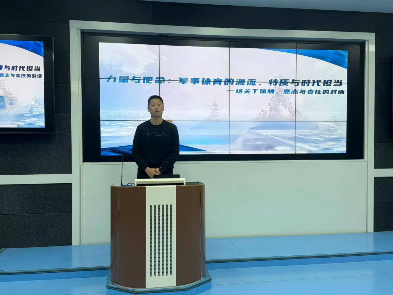 随后,韦宇副教授围绕军事体育的起源与发展、军事体育与普通高校体育的异同、部队文职人员选拔标准等方面,系统阐述了军事体育的理论体系与实践方法。结合多年教学实践案例,他生动讲解了军事体育训练的基本要领与教学重点,分享了如何在高校体育教学中融入军事元素,增强学生的国防意识与身体素质。