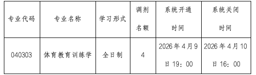 二、体育教育训练学专业调剂名额及系统开通、关闭时间