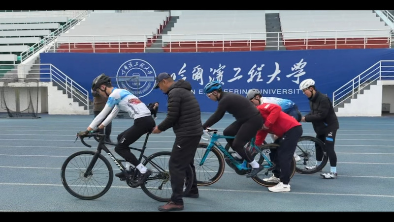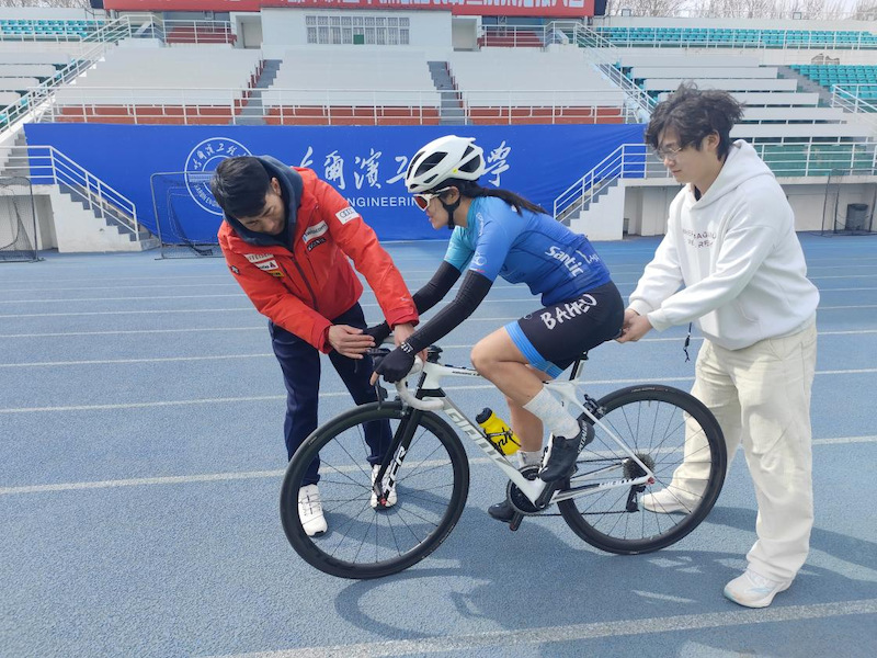座谈会后,武楠教练对自行车男女团体项目精讲,围绕起动发力、变速时机、牙盘配比、直线摇车、入弯走线、功率蹬踏等关键技术和强化核心稳定、髋膝踝联动、小肌肉群激活等进行细致教学,并针对破风领骑、接力交接、冲刺战术等团体配合要点精准示范;曲发兴专家带来了国际理念,就车辆调试、装备保养、器材优化等开展专业指导。